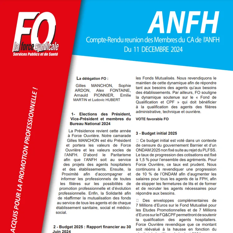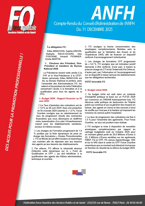 Compte rendu du CA de l’ANFH du 11 Décembre 2025.