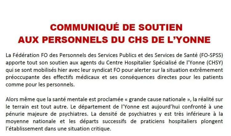 Communiqué de soutien aux personnels du CHS de l’Yonne.