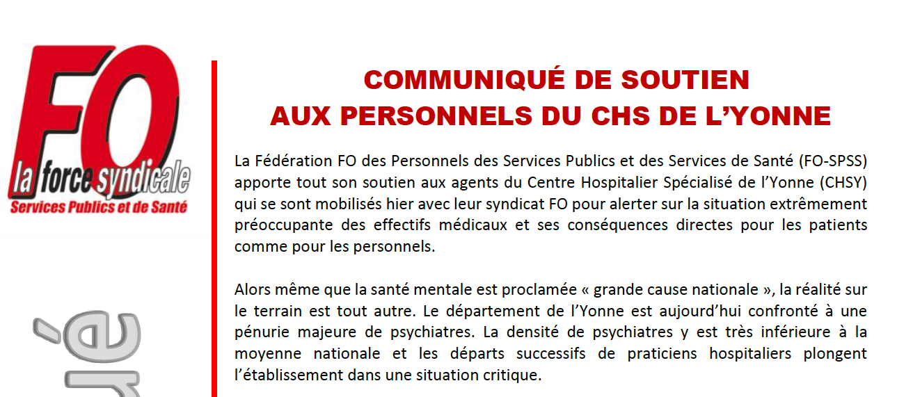 Communiqué de soutien aux personnels du CHS de l’Yonne.
